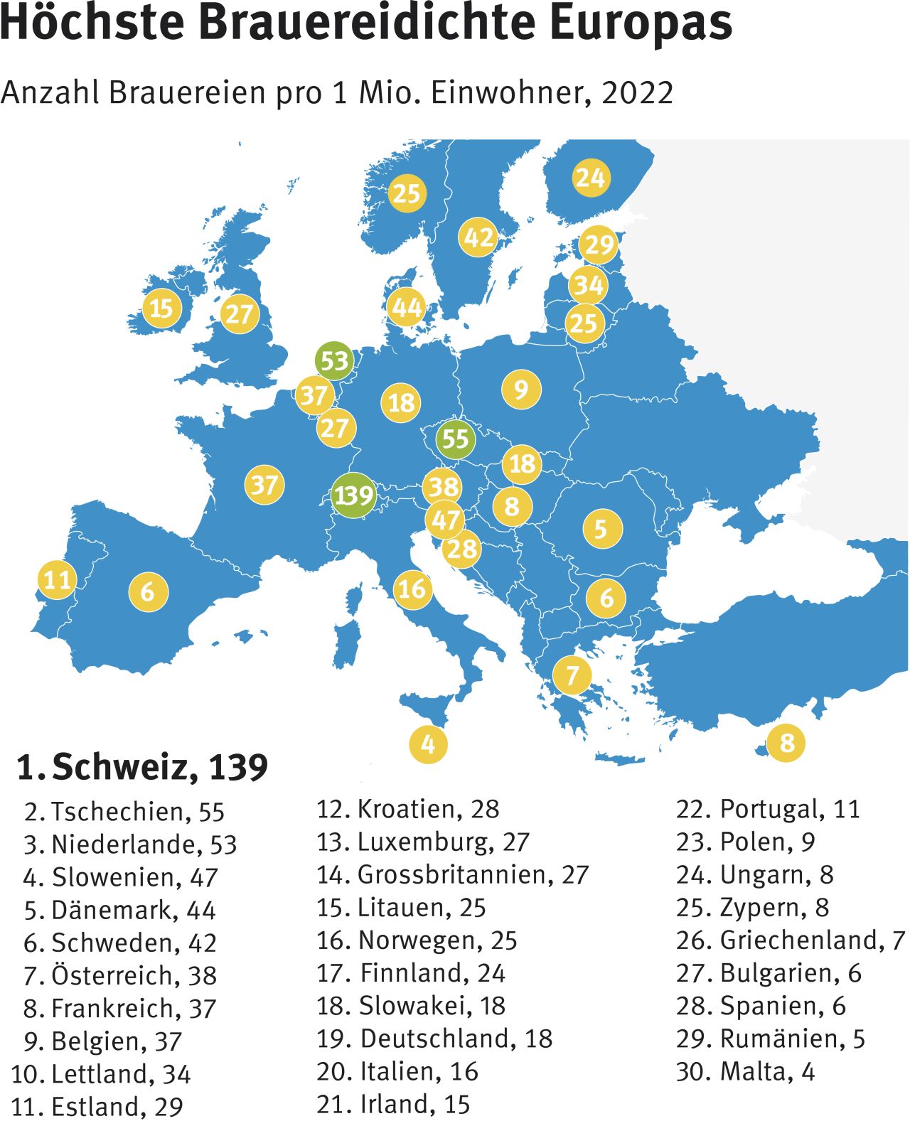 Brauereidichte Europa